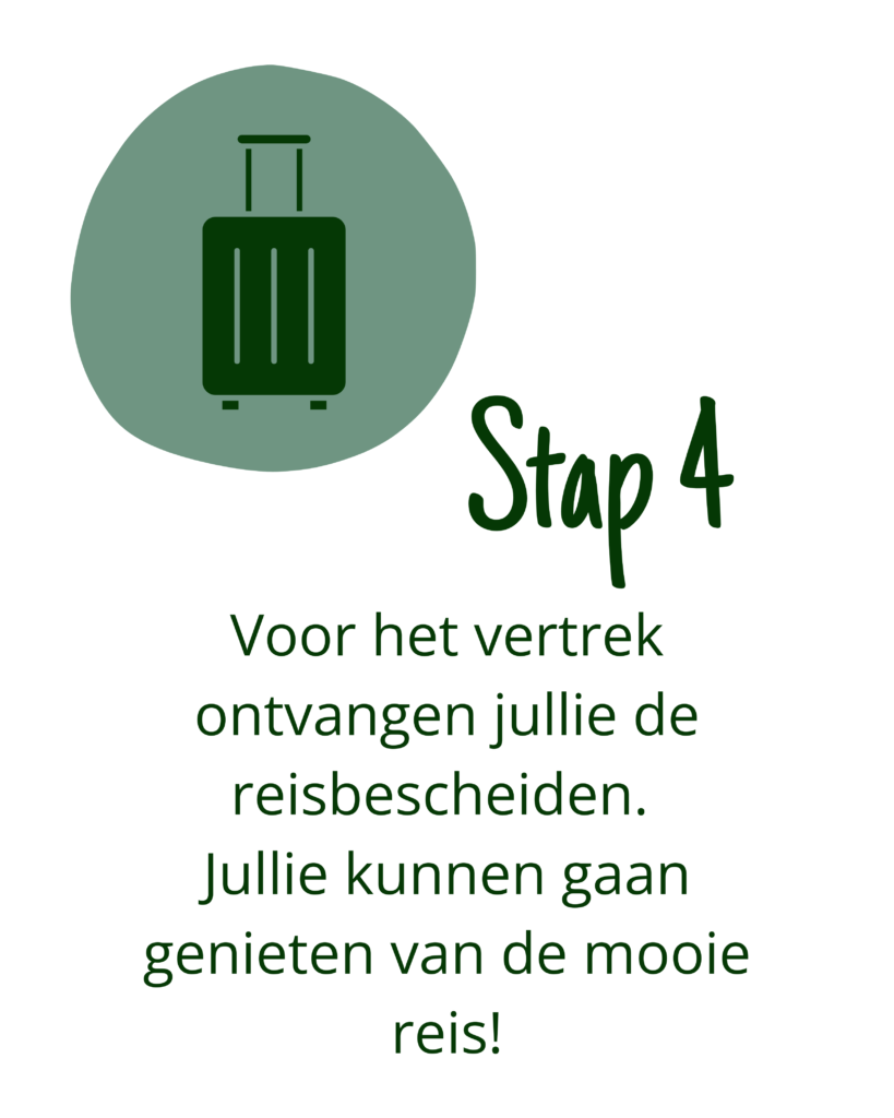 Je ontvangt je reisbescheiden doorgaans 10 tot 14 dagen voor vertrek. In sommige gevallen kan dit iets later zijn, bijvoorbeeld door specifieke eisen van luchtvaartmaatschappijen of lokale partners.